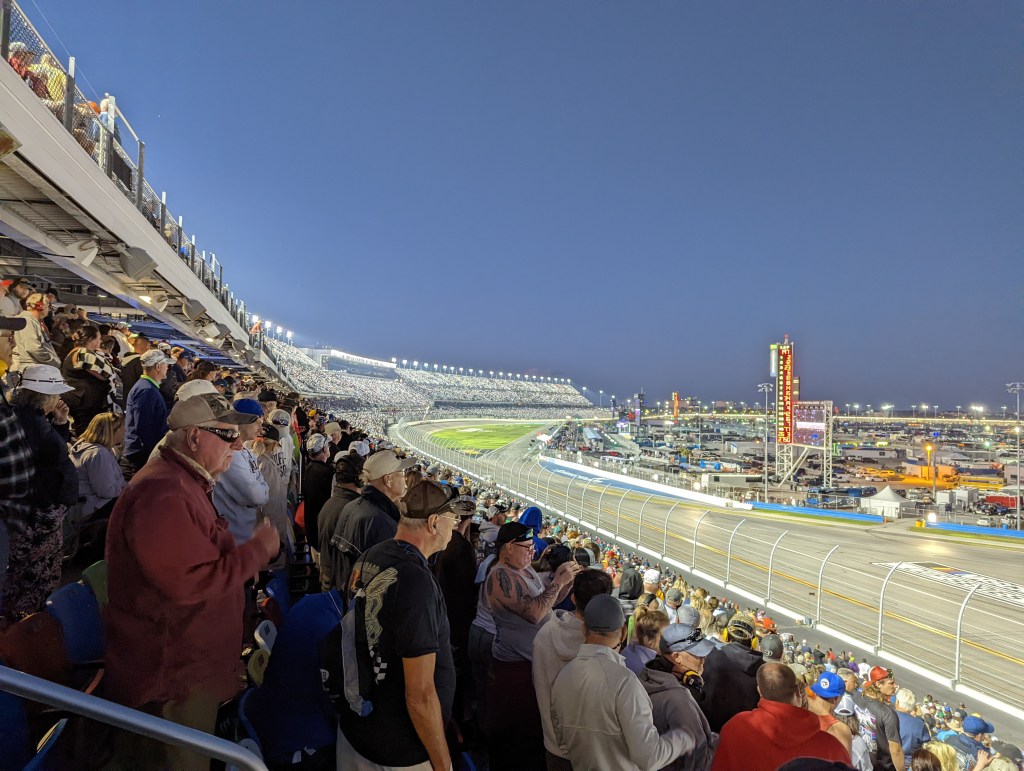 The race itself was honestly kind of a blur to me. It was just such a surreal experience for me to even be there that I was just kind of taking in all the sights and sounds rather than really closely tracking how all my favorite drivers were doing like I normally would while watching a race. The Daytona 500 had been #1 on my sports bucket list for years, and I was actually there! I was tracking Bubba Wallace closely, and that was about it. Outside of that, I was just chilling quite frankly – just enjoying myself, and taking it all in.