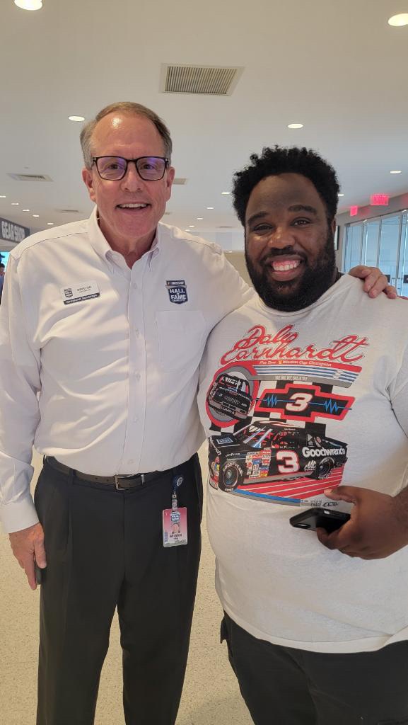 Before we could even check in, we ran into a familiar face or shall I say, voice. As we turned the corner we saw Winston Kelley, a former NASCAR radio member and the Executive Director of the Hall. It was my first time meeting him after years of my childhood were spent listening to him help call the races when I couldn’t be near a TV.