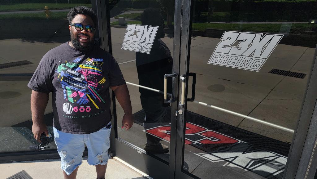 The next morning we got an early start. Not too far from our hotel was 23XI Racing’s campus. It’s still closed to the public, however they didn’t say you couldn’t take photos in front of the door.