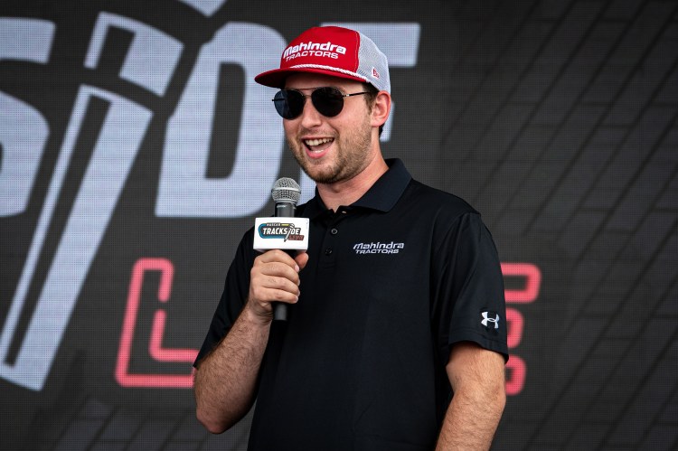 LEBANON, TENNESSEE – JUNE 26: Chase Briscoe, driver of the #14 Mahindra Tractors Ford, engages with fans prior to the NASCAR Cup Series Ally 400 at Nashville Superspeedway on June 26, 2022 in Lebanon, Tennessee.