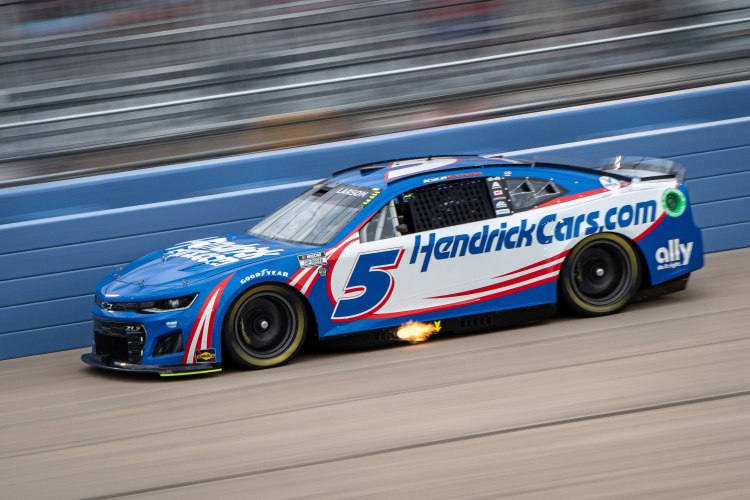 LEBANON, TENNESSEE – JUNE 26: Kyle Larson, driver of the #5 HendrickCars.com Chevrolet, races during the NASCAR Cup Series Ally 400 at Nashville Superspeedway on June 26, 2022 in Lebanon, Tennessee.