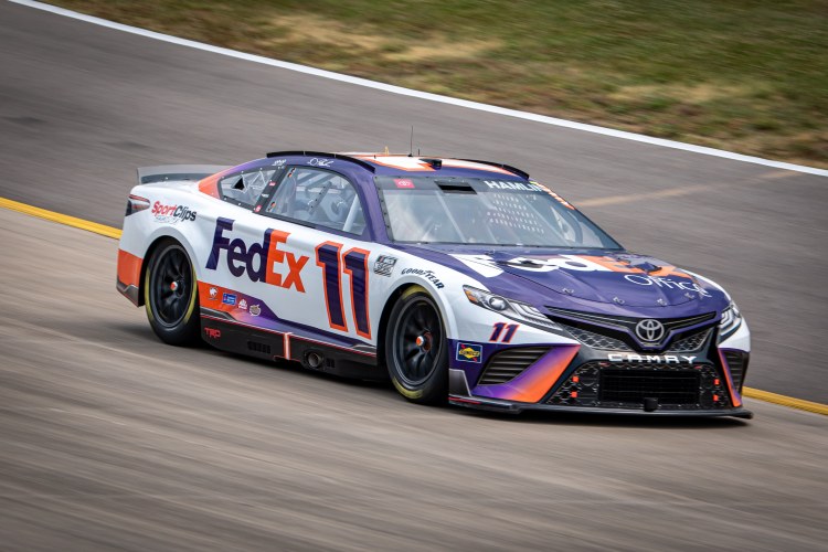 LEBANON, TENNESSEE – JUNE 26: Denny Hamlin, driver of the #11 FedEx Office Toyota, drives during the NASCAR Cup Series Ally 400 at Nashville Superspeedway on June 26, 2022 in Lebanon, Tennessee.