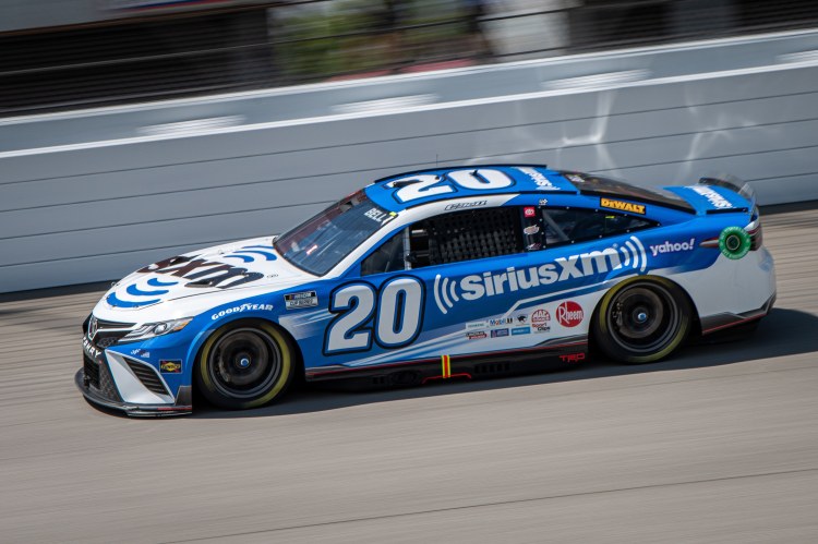 BROOKLYN, MICHIGAN – AUGUST 06: Christopher Bell, driver of the #20 Sirius XM Toyota, drives during qualifying for the NASCAR Cup Series FireKeepers Casino 400 at Michigan International Speedway on August 06, 2022 in Brooklyn, Michigan.
