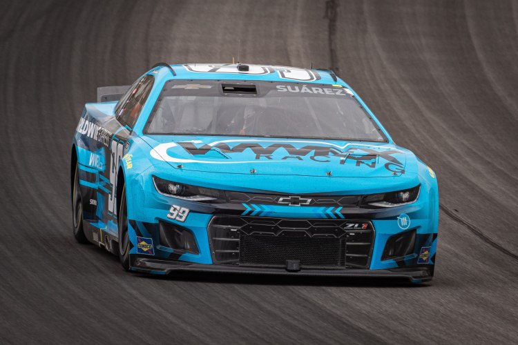 BROOKLYN, MICHIGAN – AUGUST 07: Daniel Suarez, driver of the #99 Worldwide Express Chevrolet races during the NASCAR Cup Series FireKeepers Casino 400 at Michigan International Speedway on August 07, 2022 in Brooklyn, Michigan.