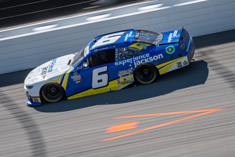 BROOKLYN, MICHIGAN – AUGUST 06: Ryan Vargas, driver of the #6 Experience Jackson Chevrolet, races during the NASCAR Xfinity Series New Holland 250 at Michigan International Speedway on August 06, 2022 in Brooklyn, Michigan.