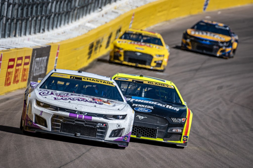 Crew chief Paul Wolfe took a gamble with 25 laps to go, risking track position to bring the No. 22 Pennzoil Ford down pit road for fresh tires, and Logano let it ride. After a pair of restarts and a brief battle with Chase Briscoe, the 2018 Cup Series Champion was able to reel in the No. 1 Tootsie’s Chevrolet, passing Ross Chastain with three laps to go and holding steady until the checkered flag waved.