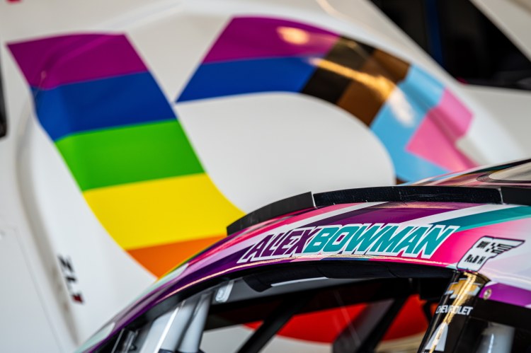 SONOMA, CALIFORNIA – JUNE 10: Accent shot of Alex Bowman’s name on the #48 Ally Pride Chevrolet prior to practice for the NASCAR Cup Series Toyota / Save Mart 350 at Sonoma Raceway on June 10, 2023 in Sonoma, California.