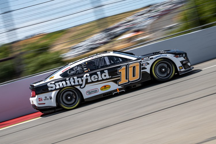 SONOMA, CALIFORNIA – JUNE 10: Aric Almirola, driver of the #10 Smithfield Ford, drives during practice for the NASCAR Cup Series Toyota / Save Mart 350 at Sonoma Raceway on June 10, 2023 in Sonoma, California.
