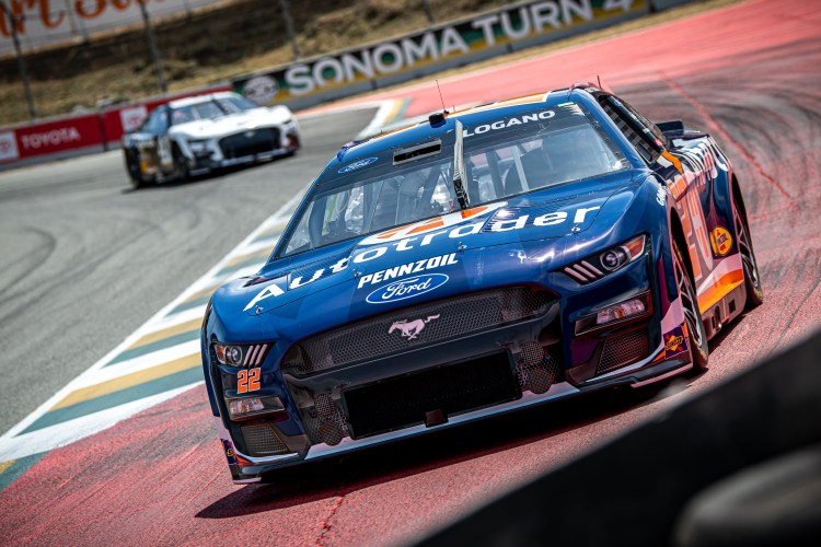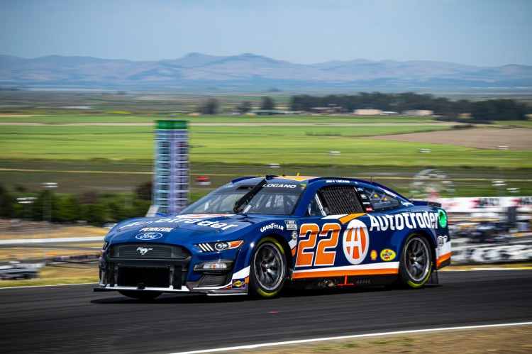SONOMA, CALIFORNIA – JUNE 10: Joey Logano, driver of the #22 Autotrader Ford, drives during practice for the NASCAR Cup Series Toyota / Save Mart 350 at Sonoma Raceway on June 10, 2023 in Sonoma, California.