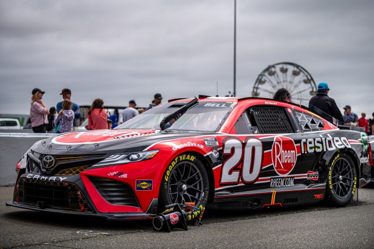 SONOMA, CALIFORNIA – JUNE 11: The #20 Rheem/Resideo Toyota of Christopher Bell sits on the grid prior to the NASCAR Cup Series Toyota / Save Mart 350 at Sonoma Raceway on June 11, 2023 in Sonoma, California.