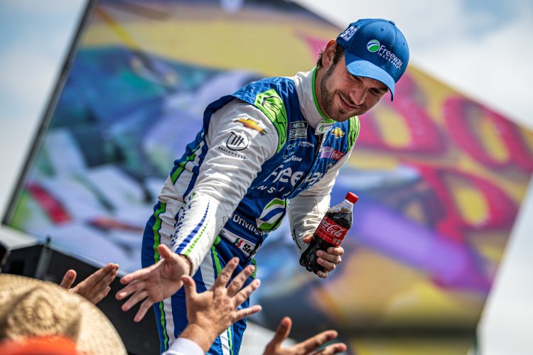 SONOMA, CALIFORNIA – JUNE 11: Daniel Suárez, driver of the #99 Freeway Insurance Chevrolet, greets fans during driver intros prior to the NASCAR Cup Series Toyota / Save Mart 350 at Sonoma Raceway on June 11, 2023 in Sonoma, California.