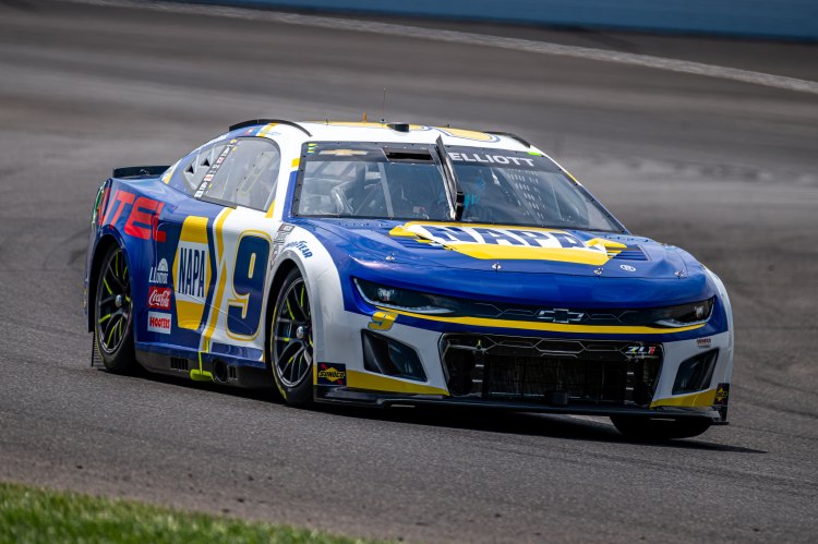 INDIANAPOLIS, INDIANA – AUGUST 12: Chase Elliott, driver of the #9 NAPA Auto Parts Chevrolet, drives during practice for the NASCAR Cup Series Verizon 200 at the Brickyard at Indianapolis Motor Speedway on August 12, 2023 in Indianapolis, Indiana.