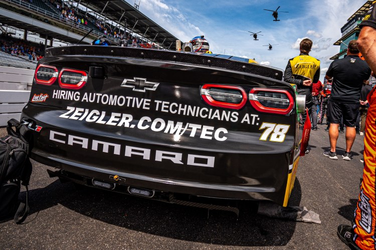 INDIANAPOLIS, INDIANA – AUGUST 13: The #33 Mobile X Chevrolet of Brodie Kostecki sits on the grid prior to the NASCAR Cup Series Verizon 200 at the Brickyard at Indianapolis Motor Speedway on August 13, 2023 in Indianapolis, Indiana.