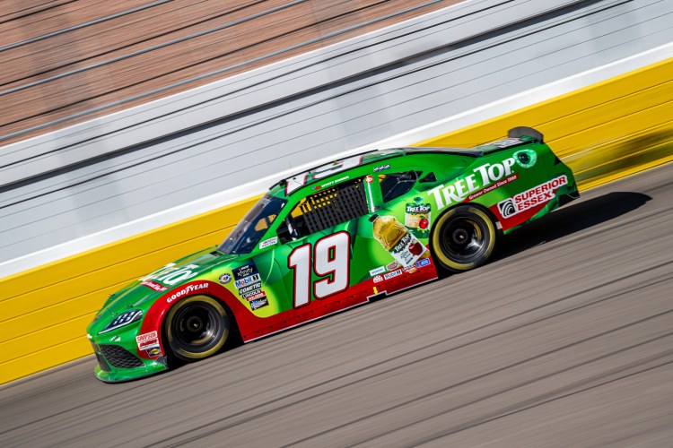 LAS VEGAS, NEVADA – OCTOBER 14: Myatt Snider, driver of the #19 Tree Top Toyota, races during the NASCAR Xfinity Series Alsco Uniforms 302 at Las Vegas Motor Speedway on October 14, 2023 in Las Vegas, Nevada.