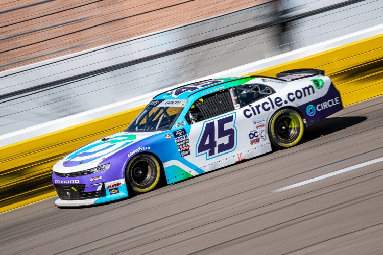 LAS VEGAS, NEVADA – OCTOBER 14: Rajah Caruth, driver of the #45 Circle Pay Chevrolet, races during the NASCAR Xfinity Series Alsco Uniforms 302 at Las Vegas Motor Speedway on October 14, 2023 in Las Vegas, Nevada.