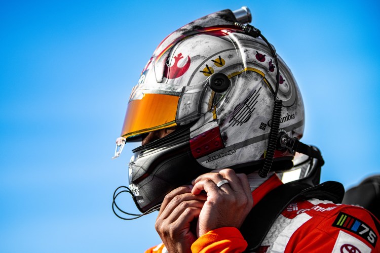 AVONDALE, ARIZONA – NOVEMBER 03: A detail view of the helmet worn by Bubba Wallace, driver of the #23 Columbia Sportswear Company Toyota, during practice for the NASCAR Cup Series Championship at Phoenix Raceway on November 03, 2023 in Avondale, Arizona.