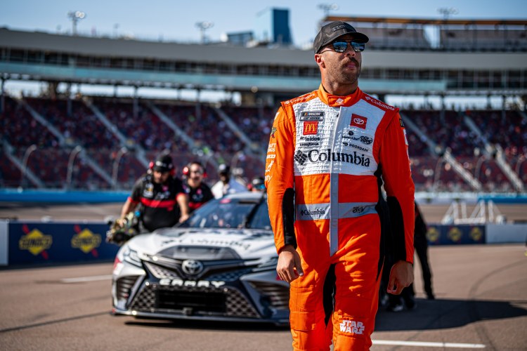 AVONDALE, ARIZONA – NOVEMBER 04: Bubba Wallace, driver of the #23 Columbia Sportswear Company Toyota, walks on the grid during qualifying for the NASCAR Cup Series Championship at Phoenix Raceway on November 04, 2023 in Avondale, Arizona.