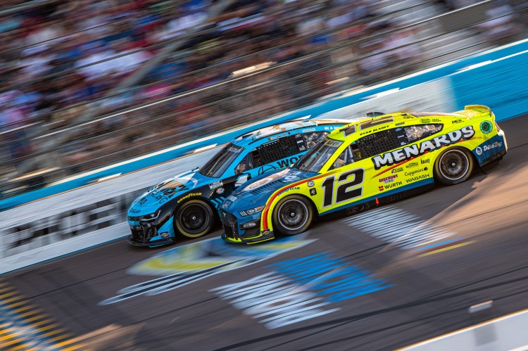 AVONDALE, ARIZONA – NOVEMBER 05: Ryan Blaney, driver of the #12 Menards/Dutch Boy Ford, races during the NASCAR Cup Series Championship at Phoenix Raceway on November 05, 2023 in Avondale, Arizona.