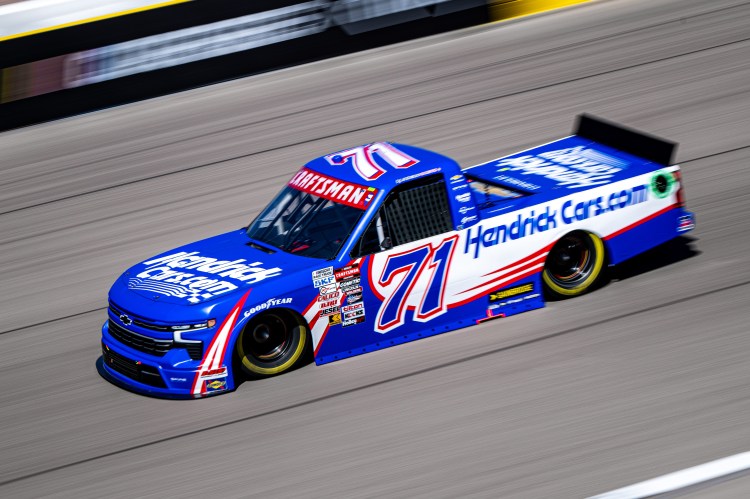 LAS VEGAS, NV – MARCH 01: Rajah Caruth, driver of the #71 Spire Motorsports HendrickCars.com Chevrolet, races during the Victoria’s Voice Foundation 200 presented by Westgate Resorts NASCAR Craftsman Truck Series race on March 1, 2024, at Las Vegas Motor Speedway in Las Vegas, NV.