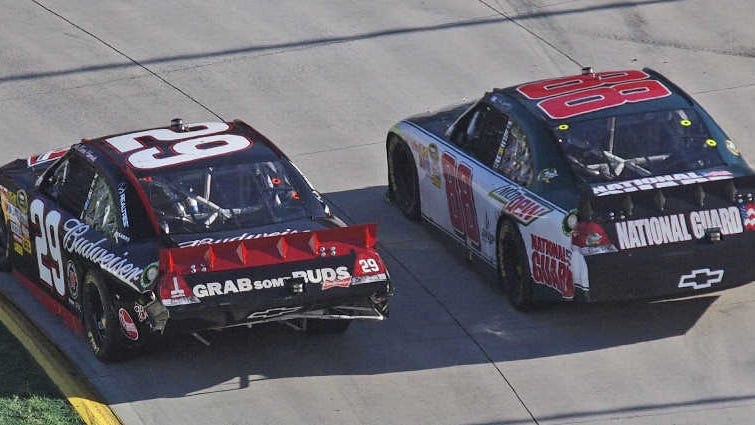 At the front, Dale Jr. stalked the Pedigree Toyota of Kyle Busch for several circuits before taking the lead with some help from the front bumper on lap 480, looking to end a 98-race winless drought. Despite a simmering rivalry between the two, Kevin and Kyle raced each other clean for second when Harvick moved into second with 13 laps left.